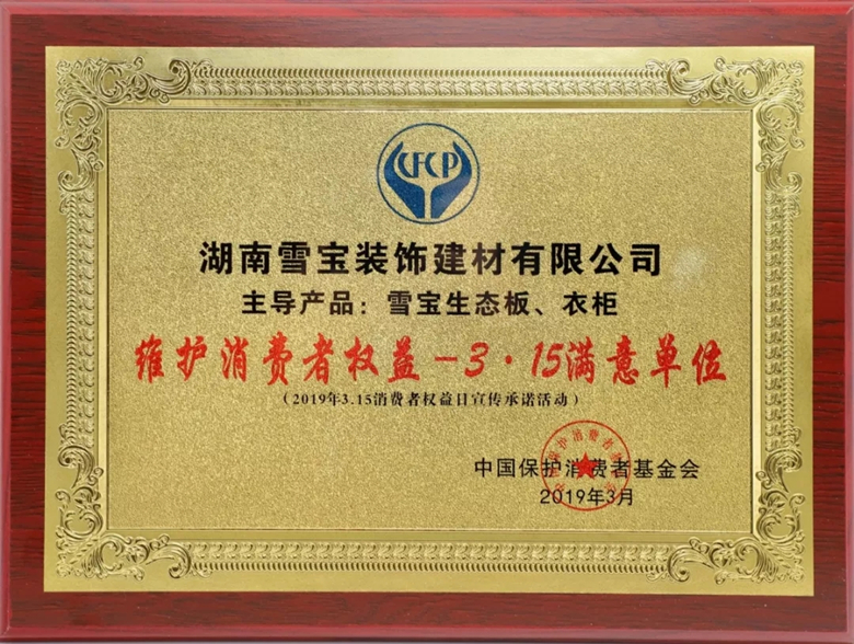 - 生態板十大名牌雪寶榮獲2019維護消費者權益-3.15滿意品牌稱號