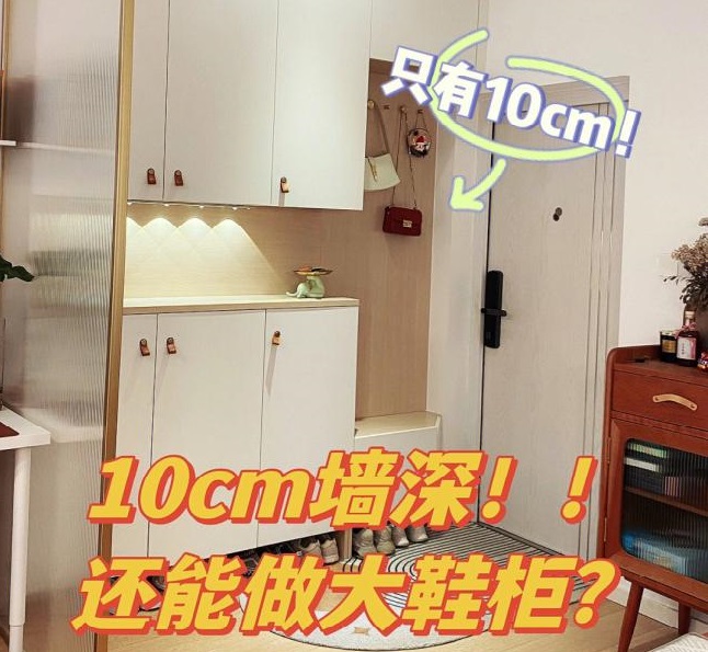快來抄作業!10cm墻深怎么做出超大容量鞋柜?由于開發商考慮不到位,入戶大門側面的玄關墻深度只有10cm??板材十大品牌設計小能手上線啦,進門做換鞋凳+轉角的設計方式,愣是給凹出了多功能大容量的玄關柜,讓鞋子整齊有序,還能兼顧感應燈、掛包包、收納、...