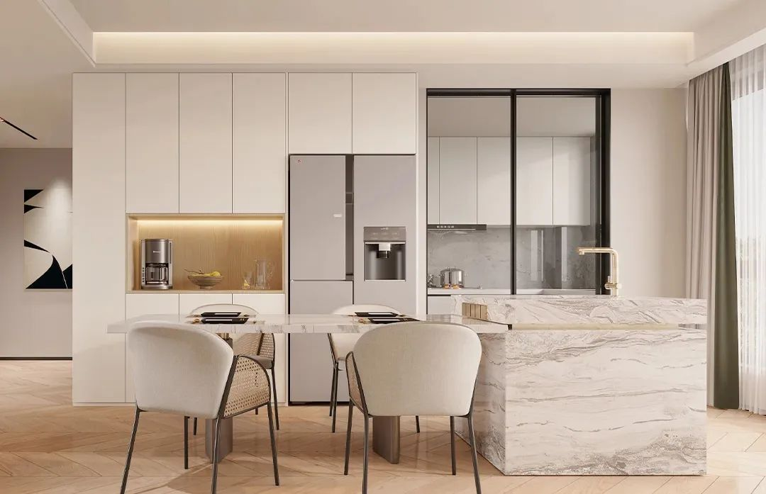 功能與顏值并存的餐邊柜,陪伴你的美好食光~ 餐邊柜作為家中不可或缺的實用設計,從來不止是餐桌收納柜,而是收納柜、酒柜、櫥柜的綜合體,同時能幫你實力減輕廚房壓力,還能經久不變,陪伴你的美好食光! 所以,餐廳柜不僅要裝,還要裝的實用美觀,讓親朋好...