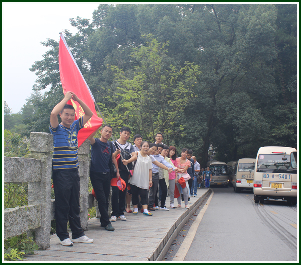 雪寶·國內營銷中心的精英們,精神飽滿,伴隨著對祖國65周年的祝福,開始徒步南岳衡山。