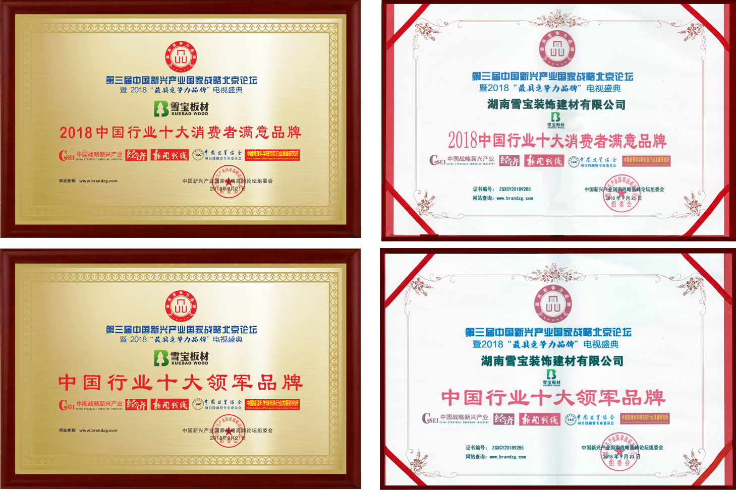 鑒于雪寶的行業(yè)影響力,2018年9月20日至22日期間,兒童房健康板雪寶板材受邀出席毗鄰北京釣魚臺(tái)國賓館的中國科技會(huì)堂舉行的第三屆中國新興產(chǎn)業(yè)國家戰(zhàn)略北京論壇暨2018“最具競爭力品牌”電視盛典,并榮獲“中國行業(yè)十大領(lǐng)軍品牌”、“2018中國行業(yè)十大消費(fèi)者滿意品牌”兩項(xiàng)大獎(jiǎng)!受到了評(píng)委會(huì)、全國新興產(chǎn)業(yè)權(quán)威專家和主流媒體的極大肯定!