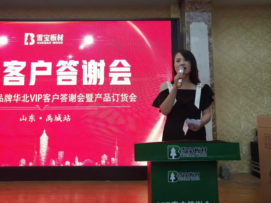 雪寶品牌華北區山東禹城雪寶板材專賣店總經理——蔡美美女士在答謝會上首先表示對在百忙之中抽身而來的嘉賓朋友們表示了誠摯的謝意和歡迎,接下來將以品質和服務為基石,深耕市場,為山東禹城縣的廣大消費者提供一流的產品、優質的服務。