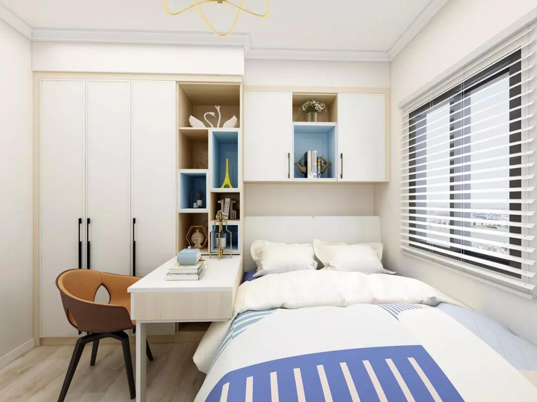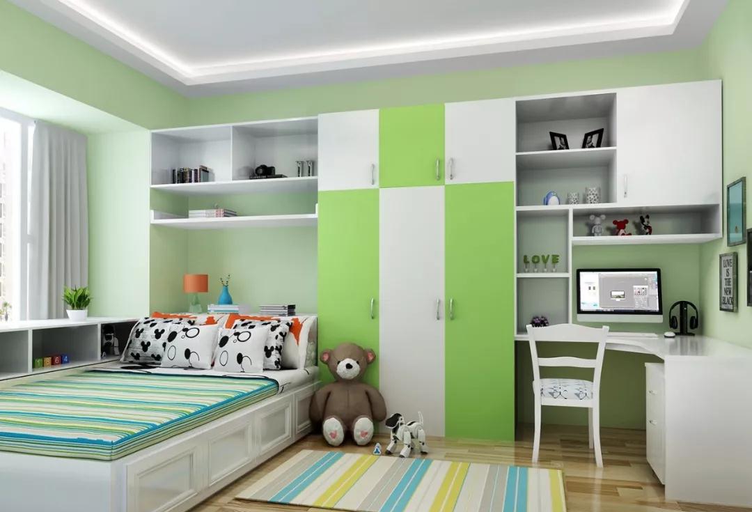 兒童房榻榻米,抬高的一體式榻榻米不僅為好動(dòng)的孩子提供了足夠的游戲區(qū)域,軟硬合適的床面也有益于孩子骨骼成長,低矮的床也不用擔(dān)心孩子睡覺摔下地了。