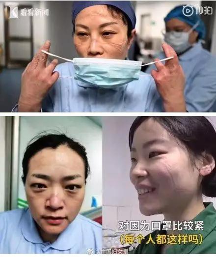 長時間佩戴口罩,醫生臉上滿是印記