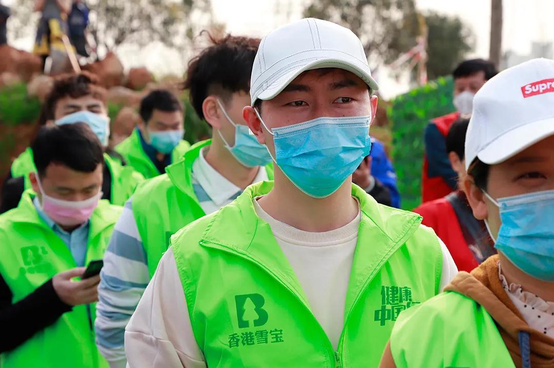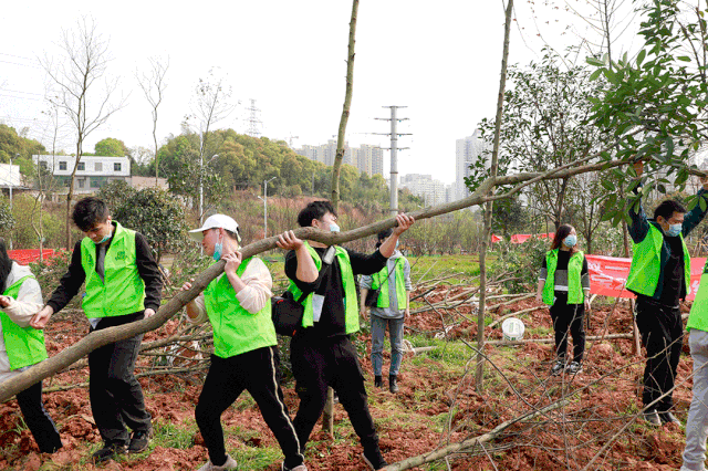 早上八點剛過,參與植樹的雪寶家人戴著口罩,拿著鐵鍬、鋤頭、水桶等工具,早早來到植樹地點,在測量體溫、簽到、領取心愿卡后,有序來到植樹區域,大家分工合作,一起種下一棵棵樹苗,他們個個熱情高漲、干勁十足,他們幾個人一組,扶直樹苗、揮鍬培土、踩實壓緊,確保做到保質、保量、保成活。