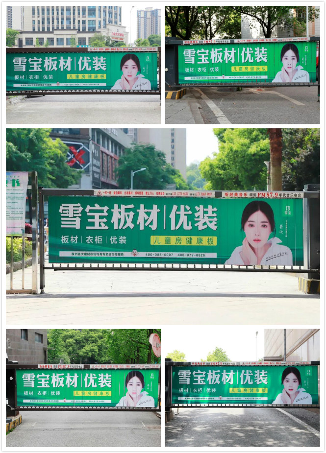 小區廣告雪寶走進千萬家:小區出入口道閘廣告覆蓋全城多個中高端社區,與廣大市民零距離接觸,真正把雪寶高環保高品質的綠色裝飾建材產品帶進千家萬戶中去。雪寶系列優質產品全方位為家居環保裝修保駕護航,歡迎蒞臨各大建材市場專賣店進行選購!
