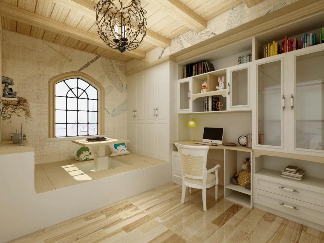 田園風格裝修色彩上多以暖色調為主,浪漫的白色家私唯美清新,淡雅的空間色彩搭配,讓整個居室變得更明亮。