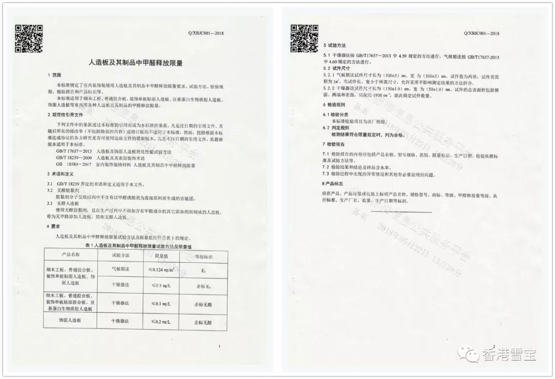 同時聯合權威機構制定雪寶企業產品標準Q/XBJC001-2018,在此標準中確定品牌E0級、無醛級的產品標準,在甲醛釋放數值上明顯優于國家標準,更環保更健康!