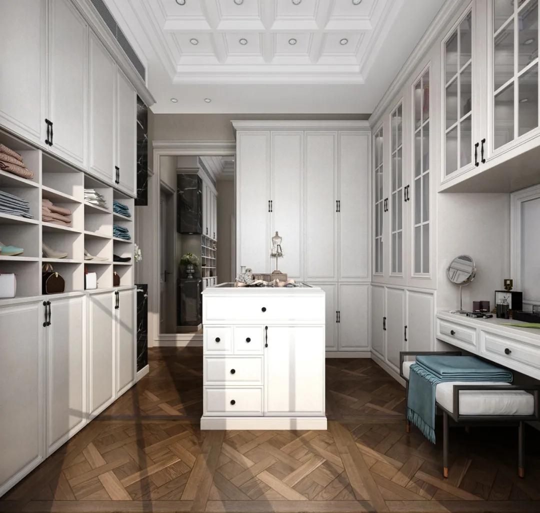 展示區:展示區屬于衣柜的畫龍點金之處,可展示主人穿衣和生活品味。展示區可以是開放式的,也能是玻璃透明式的,開放式區域可以儲放收藏品或鑰匙錢包等,便于伸手取物。