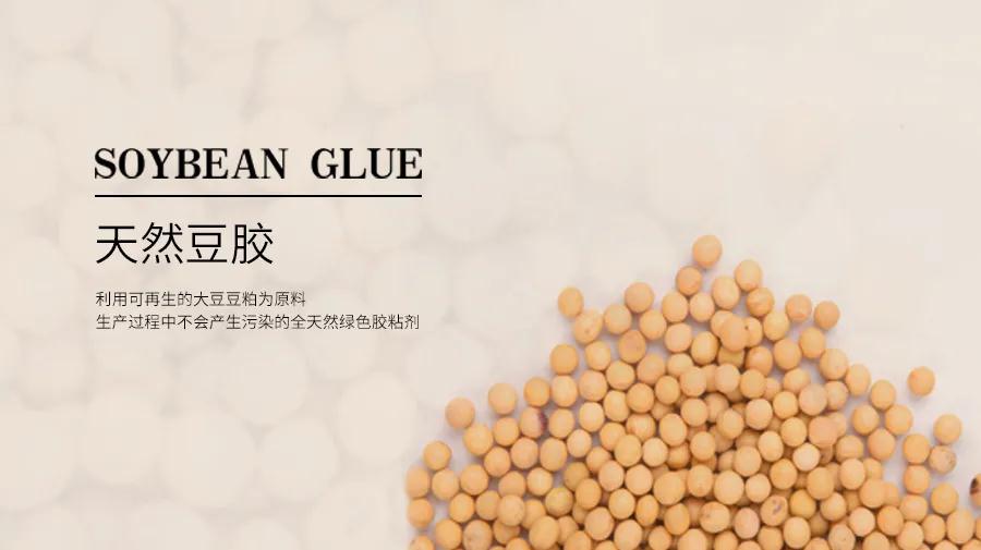 大豆植物膠是一種利用可再生的大豆豆粕為原料,以水為分散介質,連生產過程中也不會產生任何有毒、有害的污染,從根本上解決了了人們長期面對的甲醛、苯酚等室內健康危害!