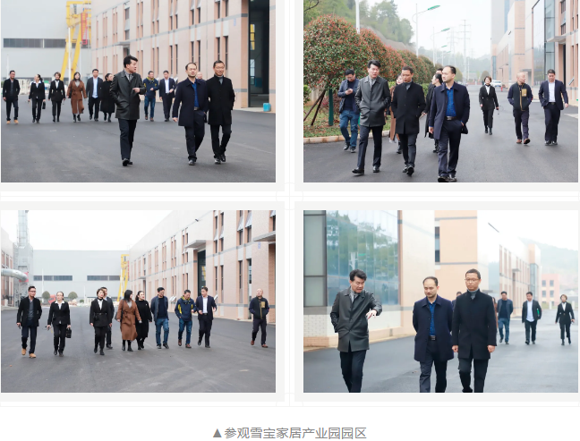 雪寶集團總部家居產業園自竣工交付以來,受到市、區各級領導廣泛關注和關心,并陸續蒞臨產業園進行視察。3月6日上午,湖南醴陵市委常委、市人民政府黨組副書記、常務副市長劉政凱等相關領導一行來到集團總部家居產業園參觀。雪寶集團董事長李振先生予以熱情迎接,攜來賓們先后參觀了企業文化區、生產車間、產業園園區面貌、雪寶優裝定制館、黨建文化建設服務中心等區域,期間由專人一一進行講解。