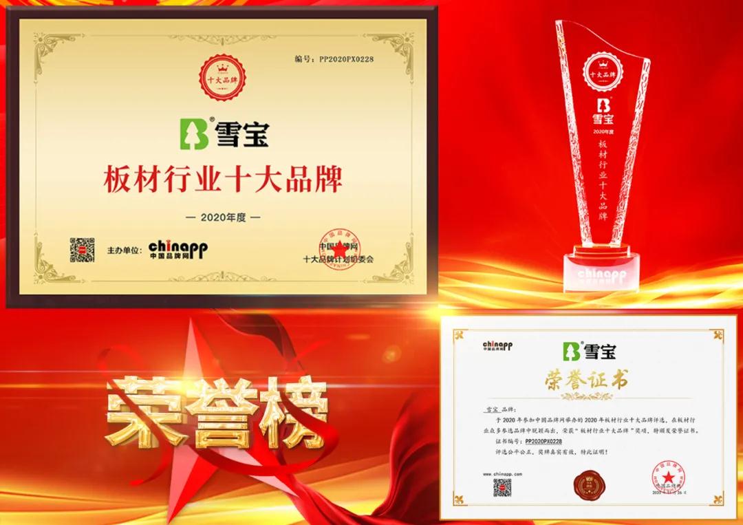喜訊丨雪寶實力斬獲“十大工程板材品牌”、“板材優秀制造企業”兩大獎項!