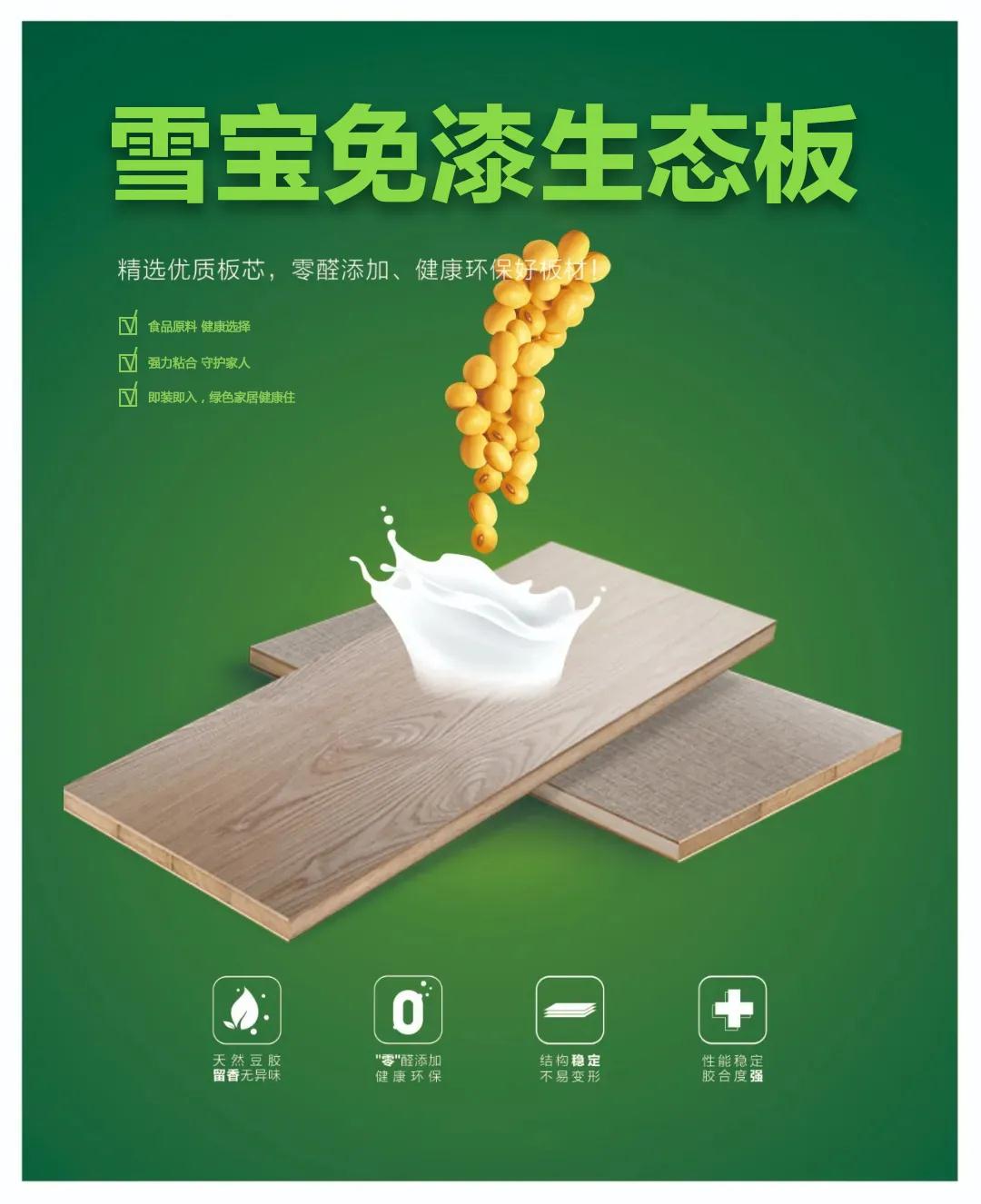 雪寶板材采用純天然大豆植物膠,不含毒害化學物質,無有毒刺激性氣體揮發,與天然優質原生板材相結合,帶來原木與大豆般的自然清香,即裝即住,自在舒心,給您的健康家居提供有力保障。