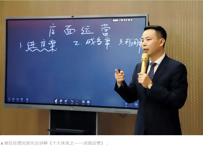 省區經理劉波先生對此次導購特訓營進行了開營致辭,強調了此次培訓的意義,敦促全體學員們要時刻保持學習的熱忱,謹記提升自我的重要性。