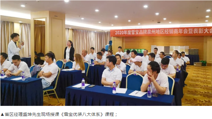 本次泉州地區經銷商年會,雪寶集團高度重視,予以大力支持。營銷、培訓、后臺等團隊現場助力,講解《雪寶優裝八大體系》、《雪寶優裝產品》、《雪寶智慧云屏》等系列課程,讓經銷商跟隨品牌發展的信念更加篤定、合作共贏的信心更加強大!