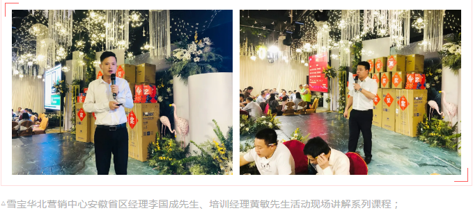 雪寶華北營銷中心安徽省區(qū)經(jīng)理李國成先生、培訓經(jīng)理黃敏先生活動現(xiàn)場講解系列課程;