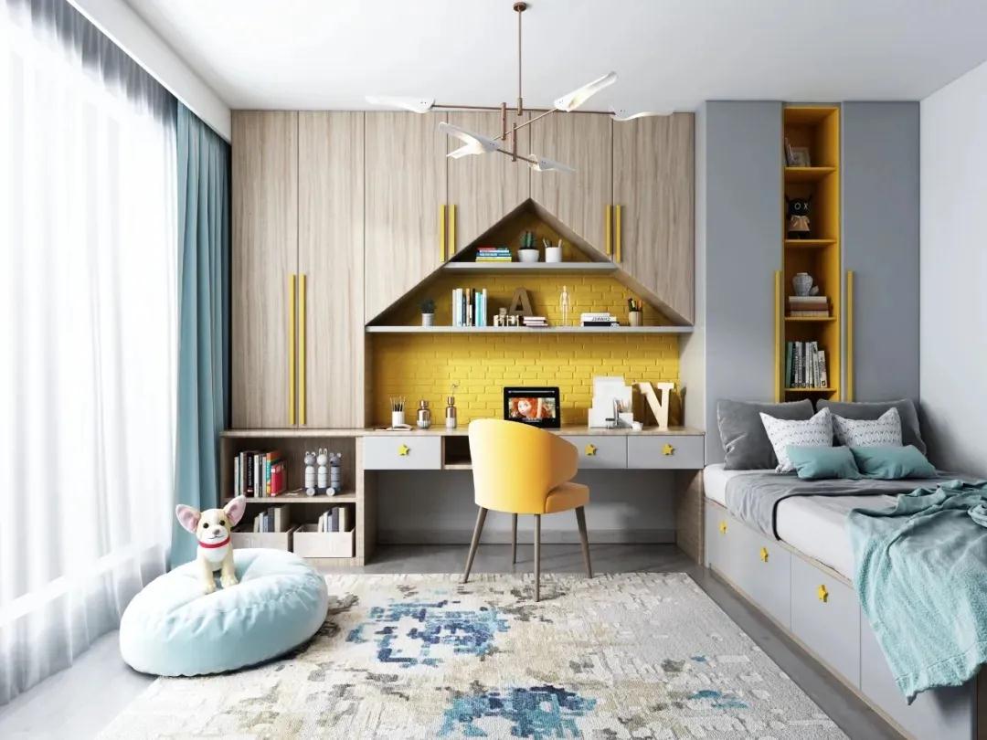 房間面積較大或者兒童年齡較大,裝修時盡可能的滿足孩子成長過程的不同需求,將功能最大化。