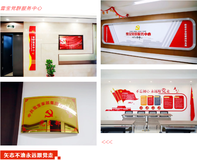 永遠跟黨走,才能擁有世界上最亮的光!建設雪寶黨群服務中心、成立中共雪寶家居集團有限公司支部委員會、組織集團骨干赴井岡山學習紅色文化,以及向優秀企業黨建文化學習和參觀等舉措,皆是圍繞以黨建來推動企業健康發展壯大!我們始終相信在黨建堅強有力的保障下,堅持不懈以黨建為引領,為推動企業創新發展而努力奮斗!
