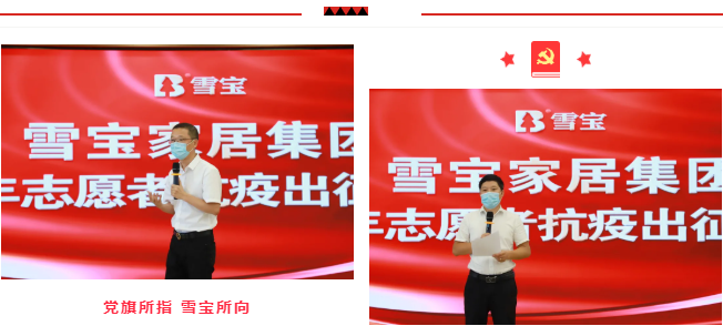 在雪寶抗疫公益愛心活動(dòng)再出征儀式上,雪寶家居集團(tuán)董事長(zhǎng)李振先生與集團(tuán)副總經(jīng)理李杰先生致詞,肯定了雪寶人的勇作為敢擔(dān)當(dāng)?shù)木,表示在一線的切身體驗(yàn)讓我們每個(gè)人對(duì)抗疫有更為清晰的認(rèn)識(shí),也深刻領(lǐng)會(huì)到歲月靜好不過是有著許許多多奮不顧身的人在負(fù)重前行,在執(zhí)著堅(jiān)守,在堅(jiān)強(qiáng)守護(hù)!
