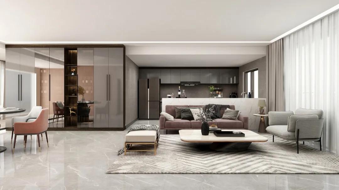 使用PET門板的家具柜用簡約、高級的飾面效果塑造空間的藝術力量,讓整個空間彌漫著一股高級、明亮、時尚,同時又有藝術化的生活氛圍。