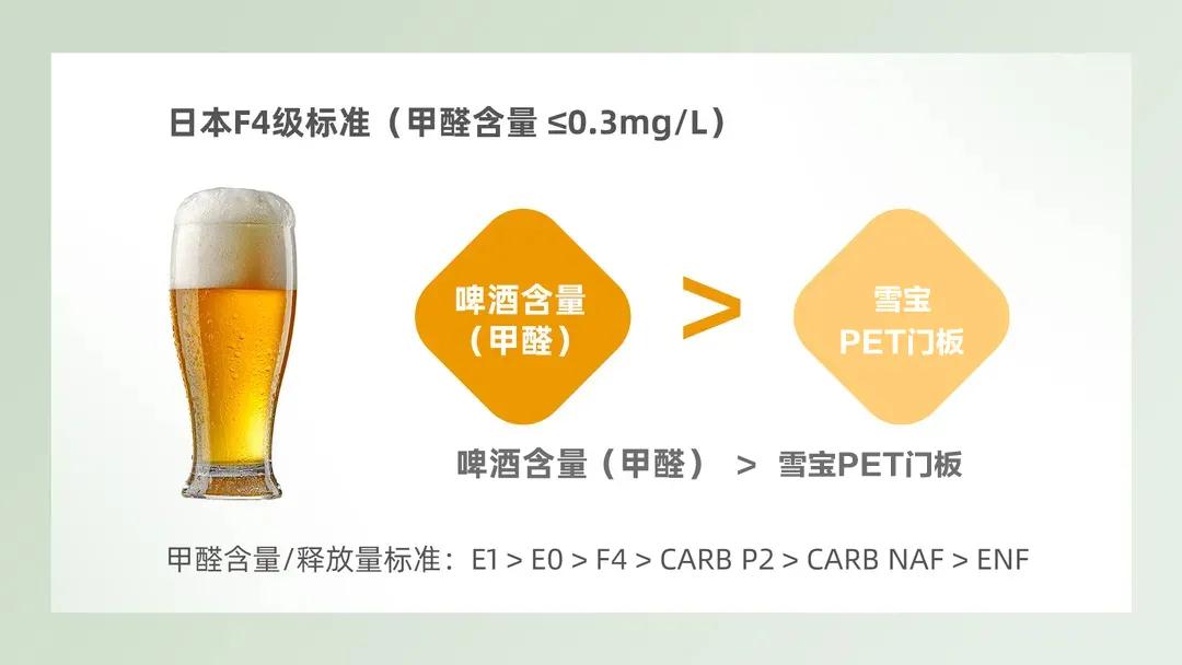 此外,雪寶PET門板環保等級基材達到F4星級,PET飾面膜零甲醛釋放,真正健康安全的產品!