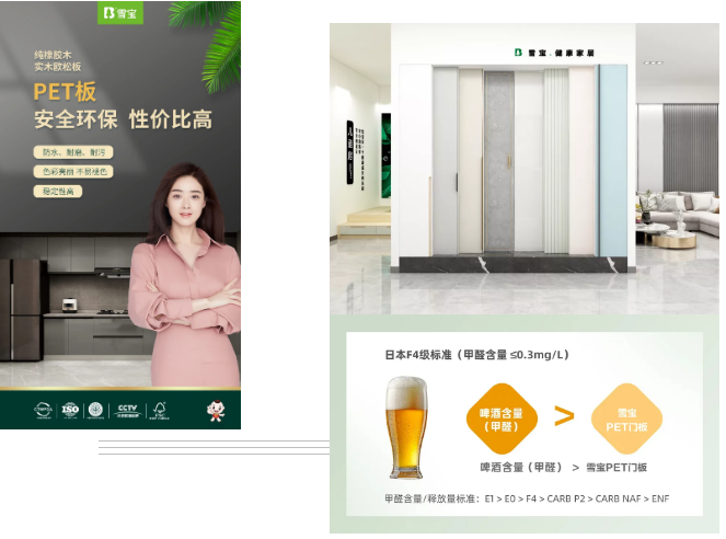 雪寶PET門板還可以很好的解決“年老色衰”問題,其優異的物理性能、化學性能,保證了長時間使用也不會出現像泛黃、出油等情況,讓家具經得起歲月考驗,歷久彌新。