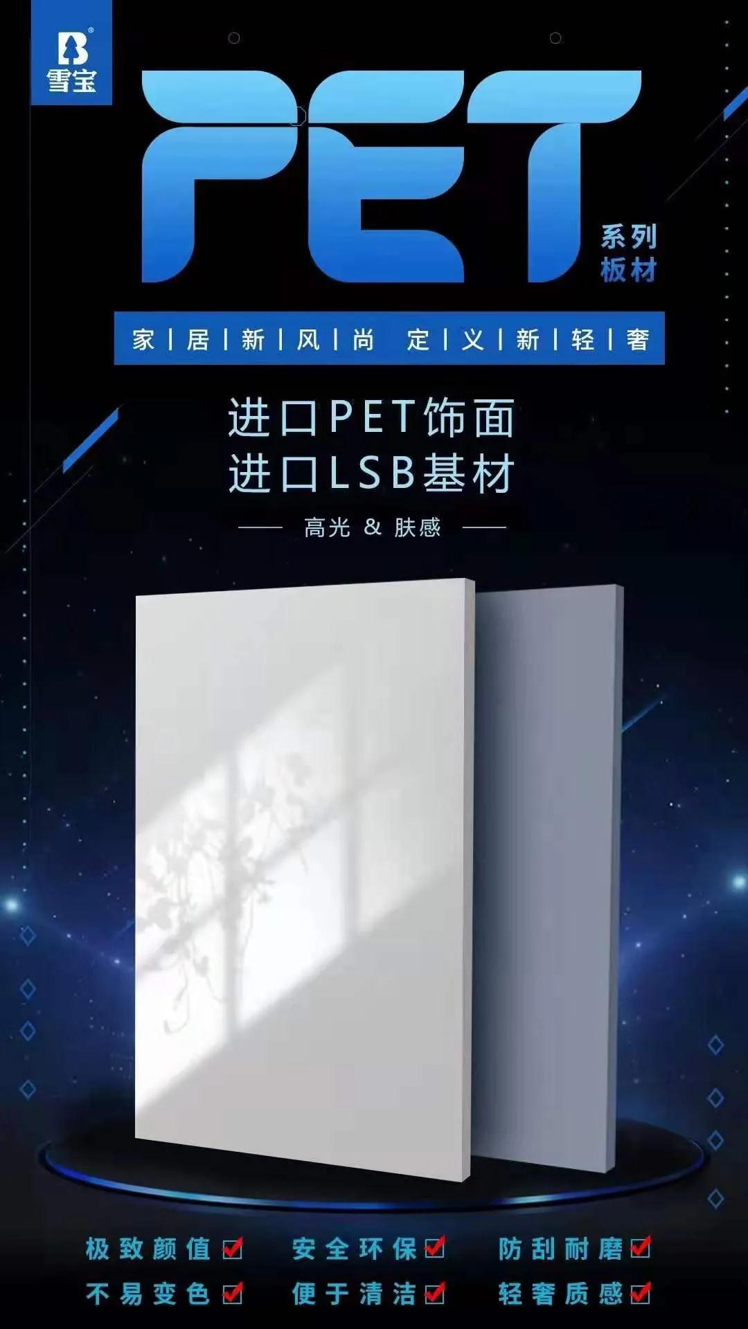 雪寶PET飾面膜的板材,表面處理有膚感/高光的效果,以達到不同光澤度和紋理效果的一種板材,可以滿足不同場景需求。同時因其平整度高、光澤度好、韌性強、不易崩邊等特點,優良的特性和環保性被廣泛應用于柜體門板之上!