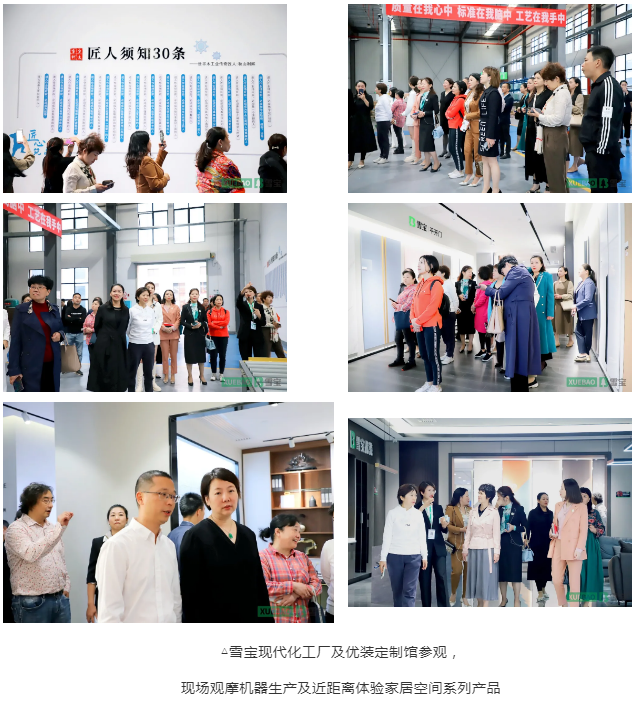 午餐過后,華商校友會及株洲市女企業家聯合會的精英大咖在集團董事長李振先生引領下,先后參觀大樓文化走廊、定制工廠、優裝定制館、黨群服務中心,領略雪寶企業發展歷程的閃耀風采以及近距離體驗現代家居產品的科技魅力。