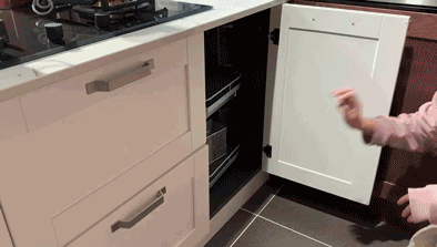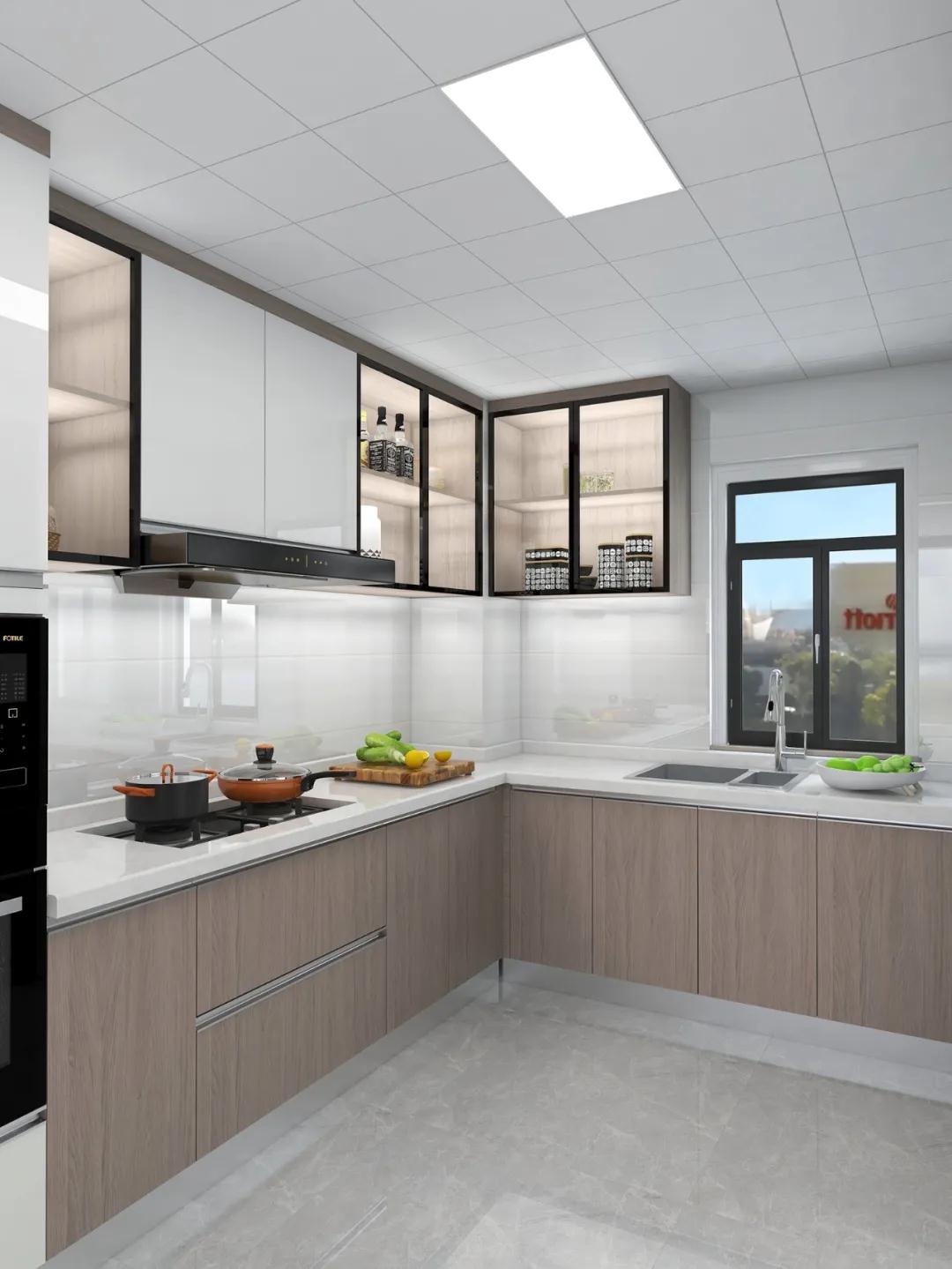 L型不僅合理設(shè)計“洗切炒”三大功能區(qū),還能讓廚房動線更順暢。能將轉(zhuǎn)角柜的雞肋空間充分利用起來,在轉(zhuǎn)角柜處設(shè)計開放式擱架、轉(zhuǎn)角拉籃等,拿取各類廚房用品超方便。
