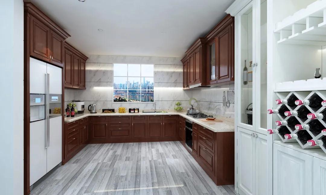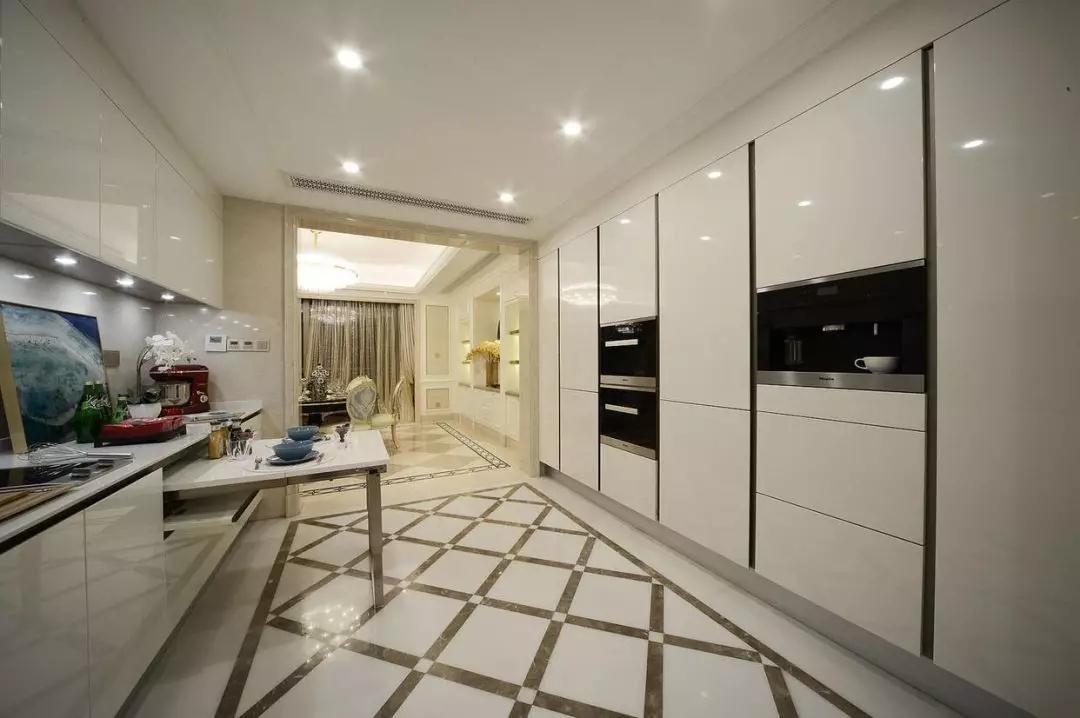 “U型”廚房的基本功能較為好用,操作流程合理,可以容納多人操作。U型廚房布局設(shè)計的櫥柜配備齊全,能充分利用空間,擴大操作面積。