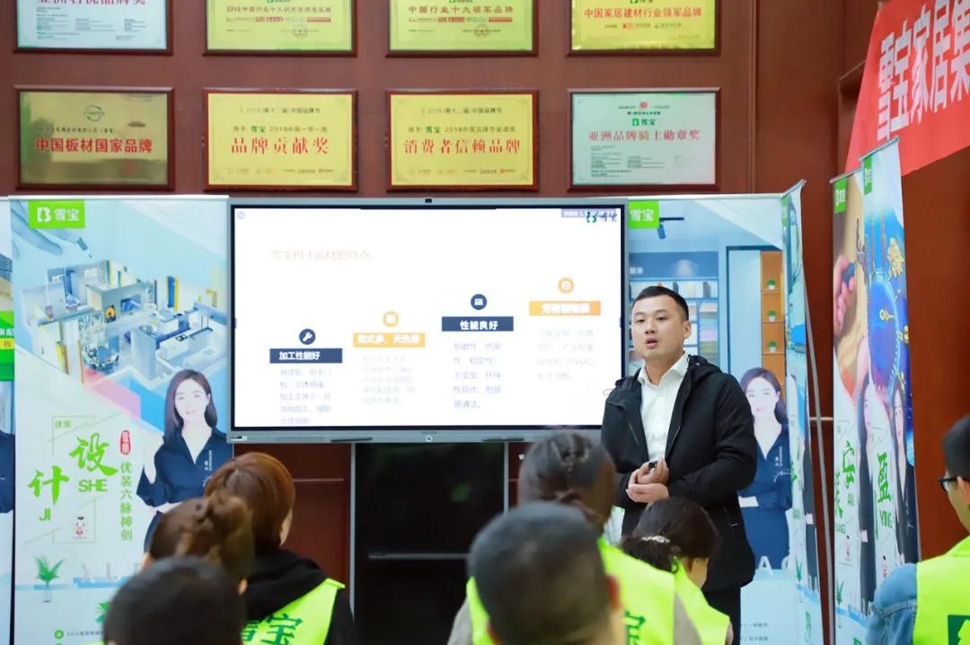 湖南雪寶裝飾材料有限公司副總經(jīng)理李杰先生授課《優(yōu)裝盈利模式》、《優(yōu)裝六脈神劍》,深入剖析雪寶“兩升一落、十五字方針”的發(fā)展戰(zhàn)略戰(zhàn)術(shù),詳細闡述雪寶優(yōu)裝“六脈神劍”及贏利模式,幫助經(jīng)銷商家人深刻透徹了解雪寶優(yōu)裝。