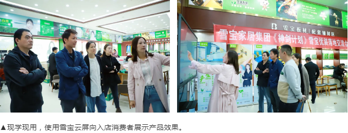 雪寶培訓(xùn)部經(jīng)理宋芳女士詳細講解門店運營神器“雪寶智慧云屏”,作為一款集企業(yè)展示、設(shè)計下單、內(nèi)訓(xùn)學習、遠程互通等多功能于一體的高清智能多媒體一體機,有助于門店多維智能展示,諸多實用功能助力賦能門店銷售業(yè)績穩(wěn)步提升。