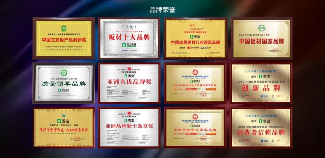 集“國字號”榮譽中國板材國家品牌、國家綠色建材品牌計劃【質量領軍品牌】、中國家居建材行業領軍品牌、定制家居領軍品牌等眾多榮譽于一身的雪寶,質量和環保屬性早已刻入品牌的基因中并傳承。