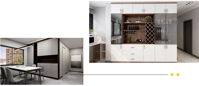 餐廳是家中最治愈人心的地方,當烹調完畢的各色佳肴被端上桌面,一家人齊聚餐桌旁,美食伴隨美景,心中的幸福感油然而生。定制一款中意的餐邊柜,節省空間的同時,與全屋的整體風格也更融合!