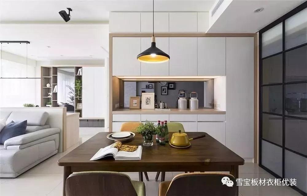 假如家里裝的是現代風,選擇原木色的餐邊柜,簡約流暢的視覺感,能和現代風格完美匹配。