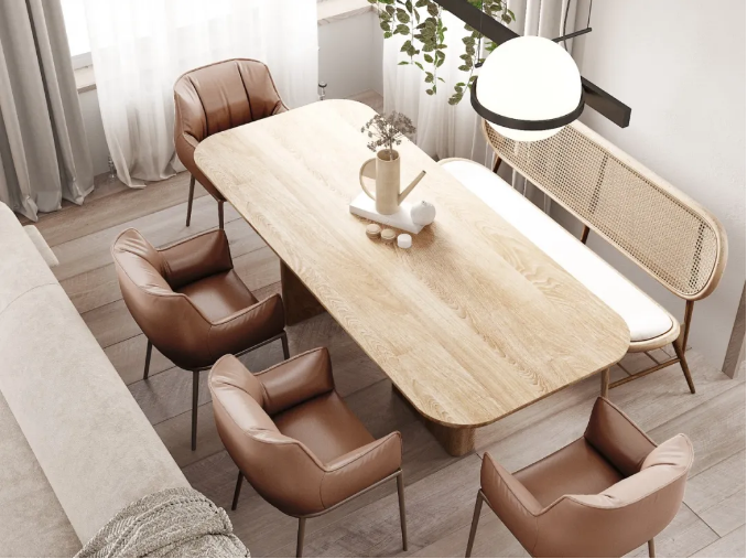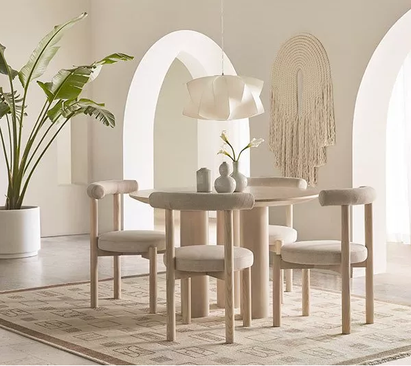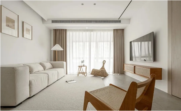 在家具材質的選擇上,建議選用有肌理感的羊羔絨、絨布、亞麻、亞克力、原木、藤編等,自帶溫暖氣息,和諧搭配整體空間氛圍。