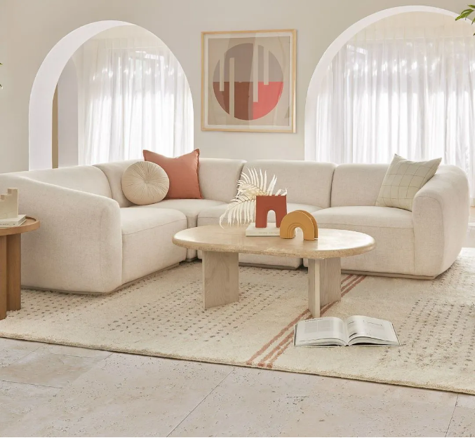 地毯是奶油色家居的利器,暖融融的毛絨地毯、自然風的編織地墊,都能作為空間的點睛之筆。