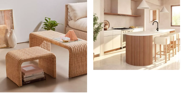 家具的造型,最好選擇圓潤曲線設計,強化空間的軟糯可愛感,增強趣味性,如圓滾滾的沙發、圓弧桌椅、S型的落地燈、邊角圓弧的床具等。