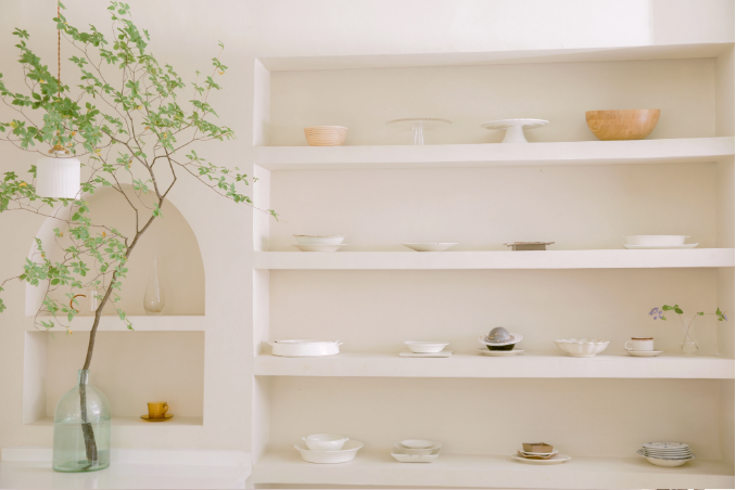 硬裝打造上,奶油色可以賦予空間細膩優雅的氣質,因此在硬裝上面不應繁復,而應盡力做到極簡,來襯托奶系風格。