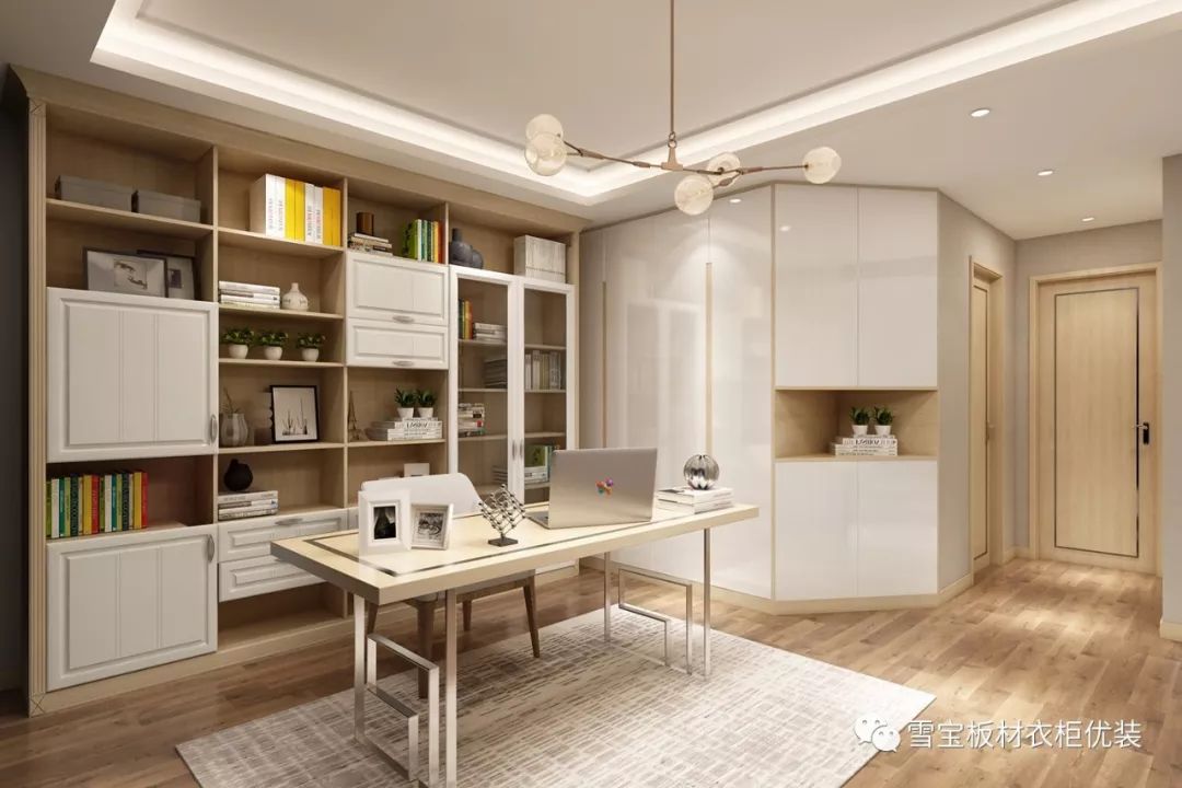 書房逐漸成為家庭中的標配空間,其裝修設計應根據個人喜好、家中整體的裝修風格來定。作為一個獨立的空間,在裝修時還是應以輕裝修為原則,裝飾性的部分能簡則簡,留給我們更多的空間來工作學習。