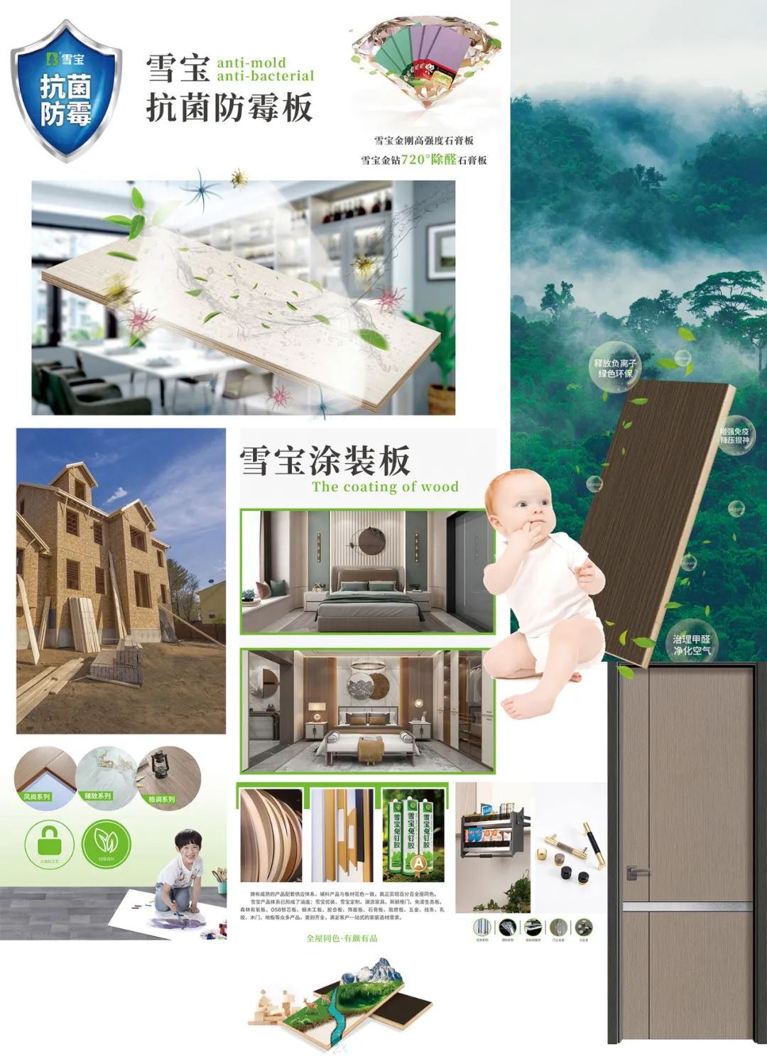 始于品質,精于工藝,忠于客戶,高品質、高環保的雪寶板材兒童房健康板,切實做到大品牌有保障、消費者高評價,成為所共識共享的環保好板材。