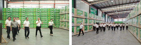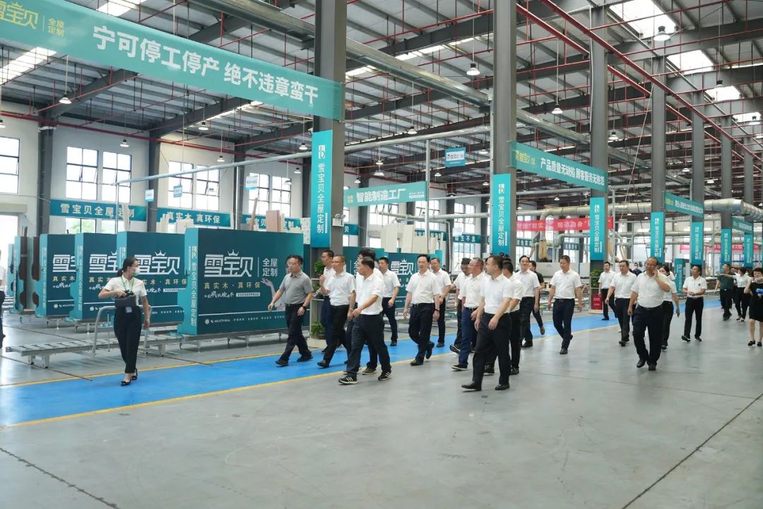 在雪寶現(xiàn)代化工廠觀摩中,市區(qū)領導一行通過儀器檢測體驗了能釋放負離子的森林有氧板,了解了雪寶智能制造加工生產(chǎn)的標準作業(yè)工作流程,并且就如何把板材精準無誤變成板件,最后成為家具柜的工藝全流程聽取了匯報講解。