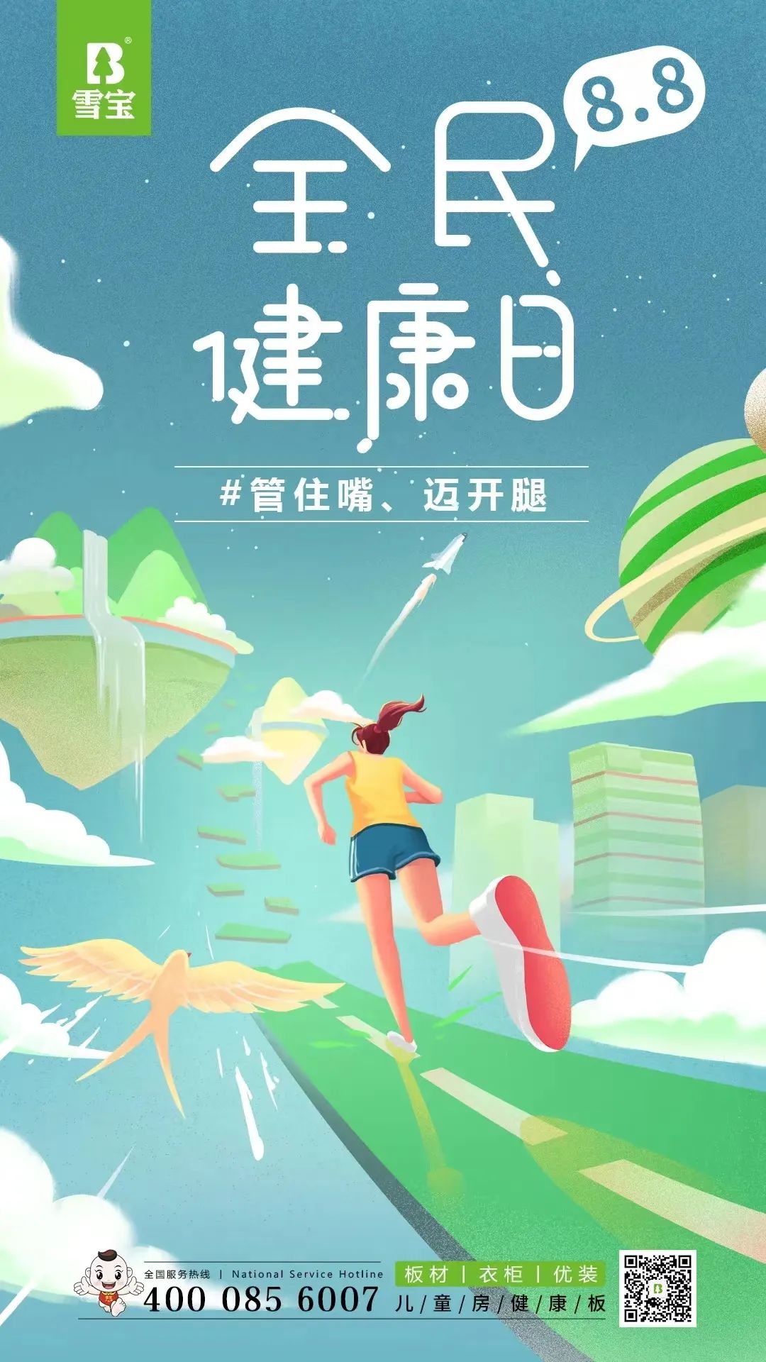 自此之后,每年的8月8日都是“雪寶全民健康日”,雪寶積極響應、踐行國家“全民健身日”的活動號召,時刻牢記使命,為人類家居健康而奮斗終身!