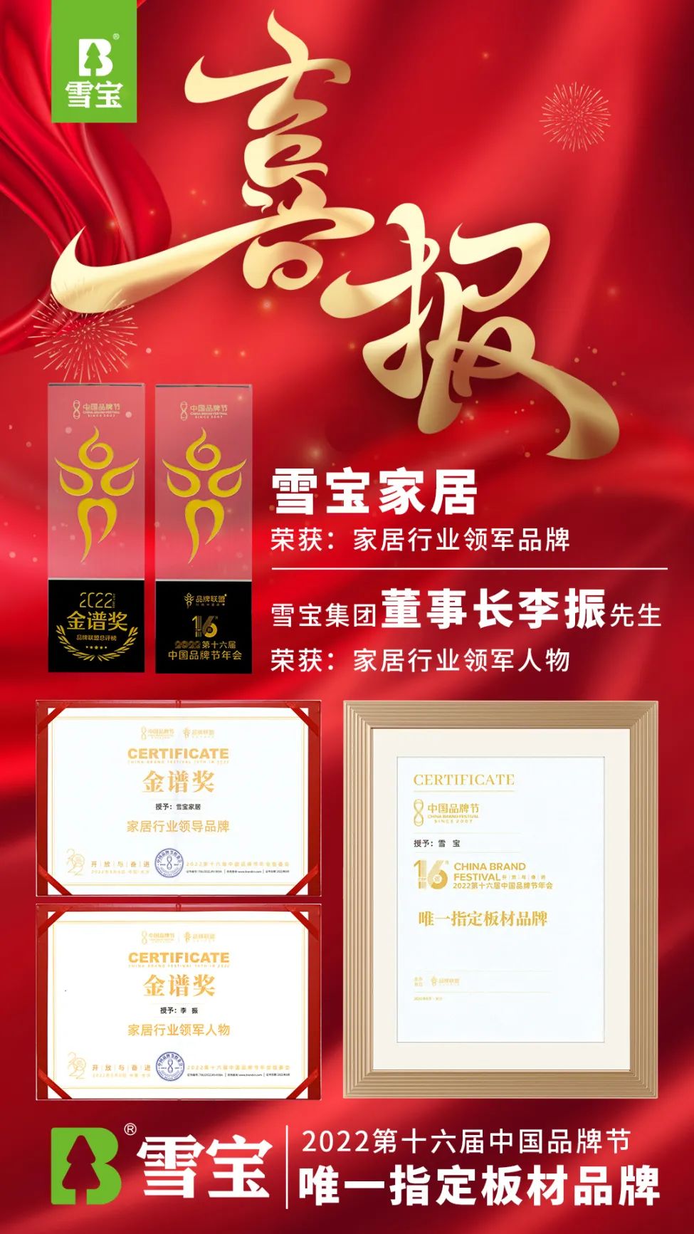 第16屆中國品牌節|雪寶板材作為年會唯一指定板材品牌載譽而歸