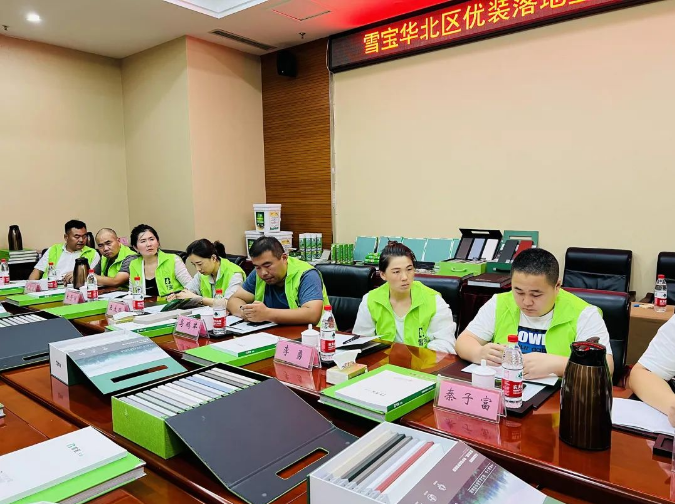 產品好也要具備過硬的專業產品知識進行宣導才能體現它的價值!會上,華北營銷中心孫林講解雪寶五金產品介紹、趙蘭仕講解雪寶家具板/PET產品介紹。
