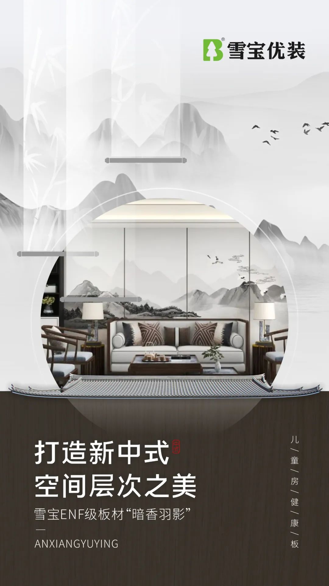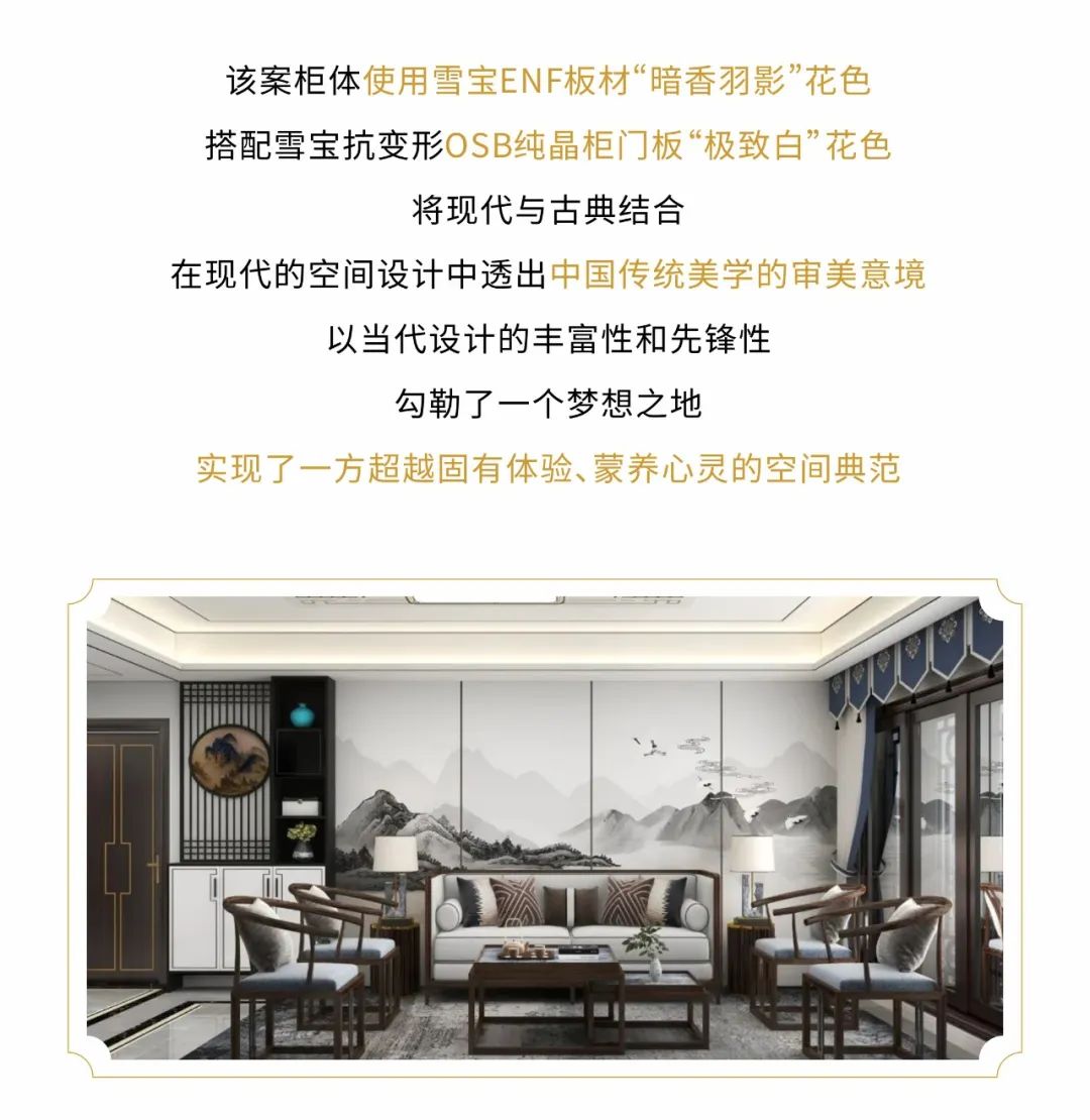 雪寶ENF級板材“暗香羽影”,打造沁人心脾的新中式空間層次之美