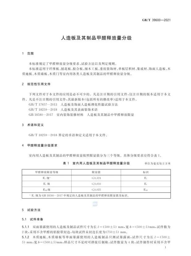 該標準將室內用人造板及其制品的甲醛釋放量按照限量值分為3個等級,即E1級(≤0.124mg/m³)、E0級(≤0.050mg/m³)和ENF級(≤0.025mg/m³)。新國標ENF級成為了全球人造板行業最嚴苛的環保等級標準,規定甲醛釋放量數值超過歐美、日本環保標準。