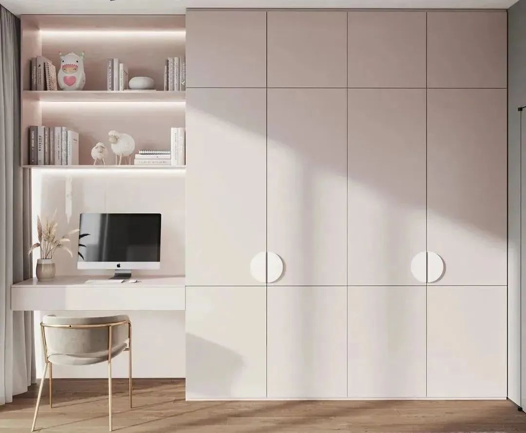 對(duì)于愛美的女士來(lái)說(shuō),除了想擁有一個(gè)大大的衣柜,可以放下想買衣服,當(dāng)然也希望有一個(gè)梳妝臺(tái)。衣柜連接梳妝臺(tái)則完美解決這個(gè)問(wèn)題,整體空間充分利用,梳妝、收納兩不誤。