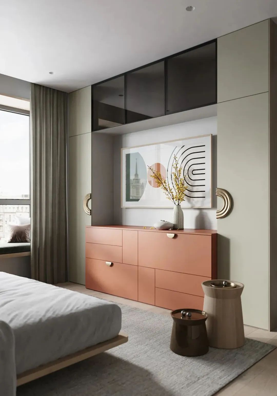 有的業(yè)主會(huì)選擇將電視搬進(jìn)臥室,將電視柜與定制衣柜進(jìn)行組合設(shè)計(jì),既能滿足日常休閑需求,還能解決物品收納的問(wèn)題,一舉兩得。