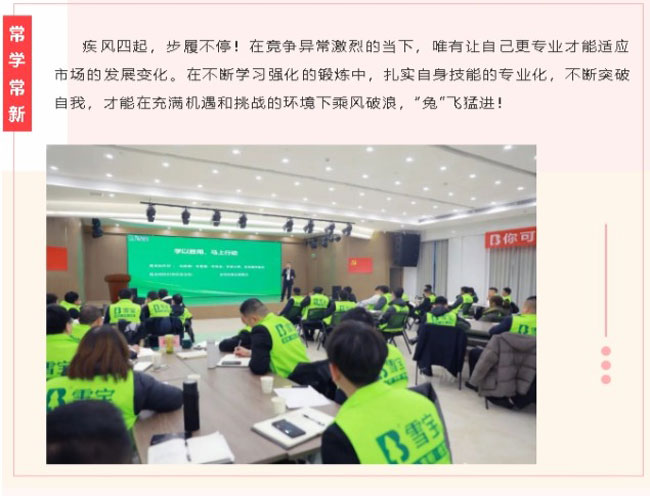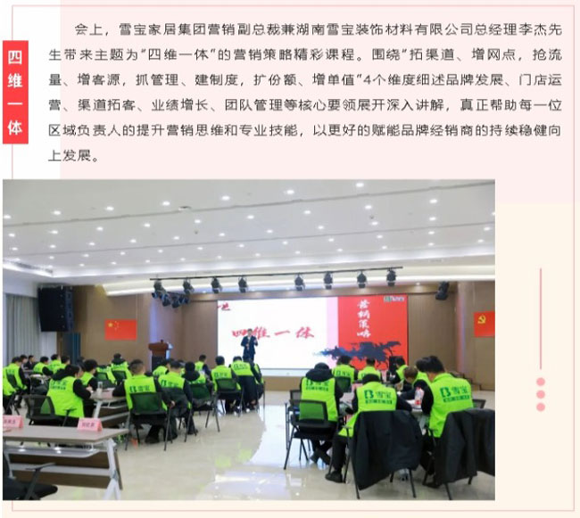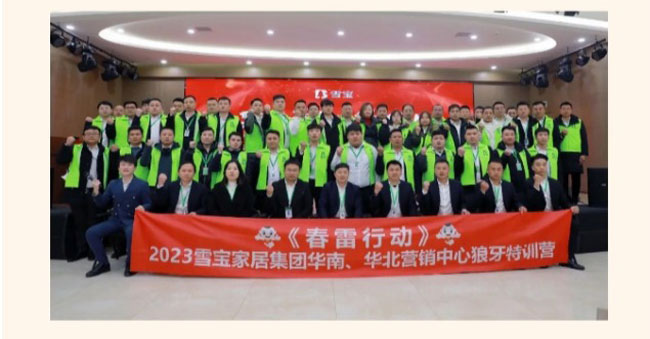 本次特訓(xùn)營(yíng)活動(dòng),旨在夯實(shí)基礎(chǔ)、深練內(nèi)功,錘煉過硬本領(lǐng),打造金牌之師的作戰(zhàn)營(yíng)銷團(tuán)隊(duì),從而更好的為廣大經(jīng)銷商和消費(fèi)者提供系統(tǒng)化專業(yè)化的品牌服務(wù)。雪寶家居集團(tuán)華南、華北兩大營(yíng)銷中心的銷售精英們匯聚一堂,與部分企業(yè)中高層一同參與本次“春雷行動(dòng)”培訓(xùn),卯足干勁,以奮進(jìn)之姿開啟2023年的新征程。